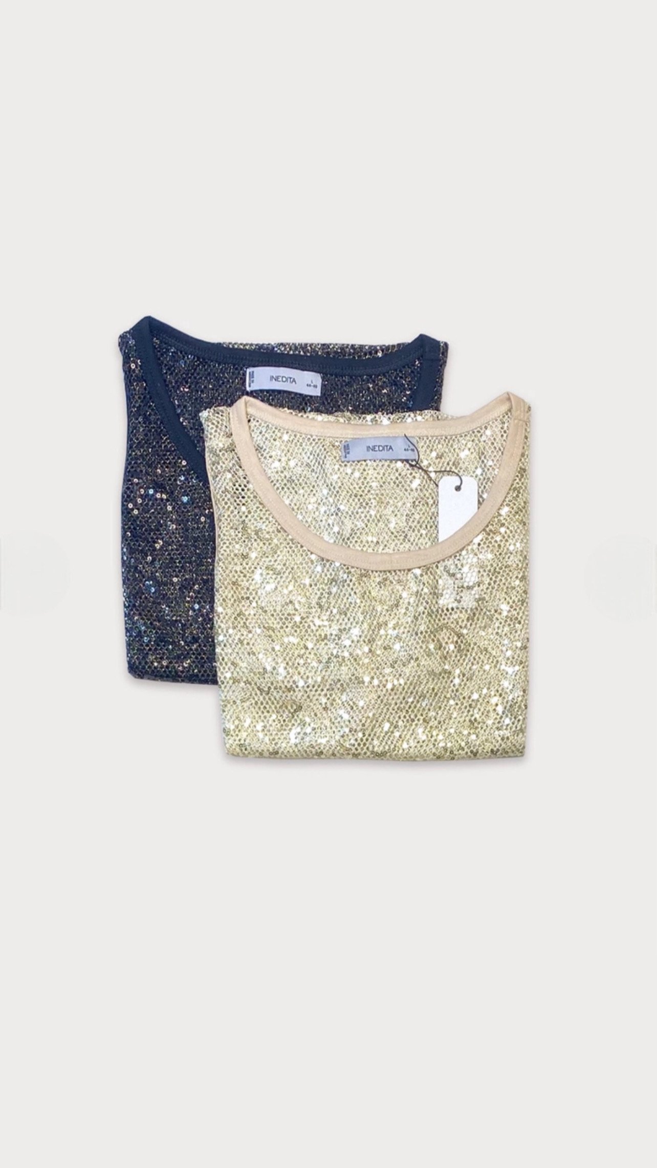 Top musculosa con lentejuelas al tono. Composición: 92% poliéster 8% spandex.