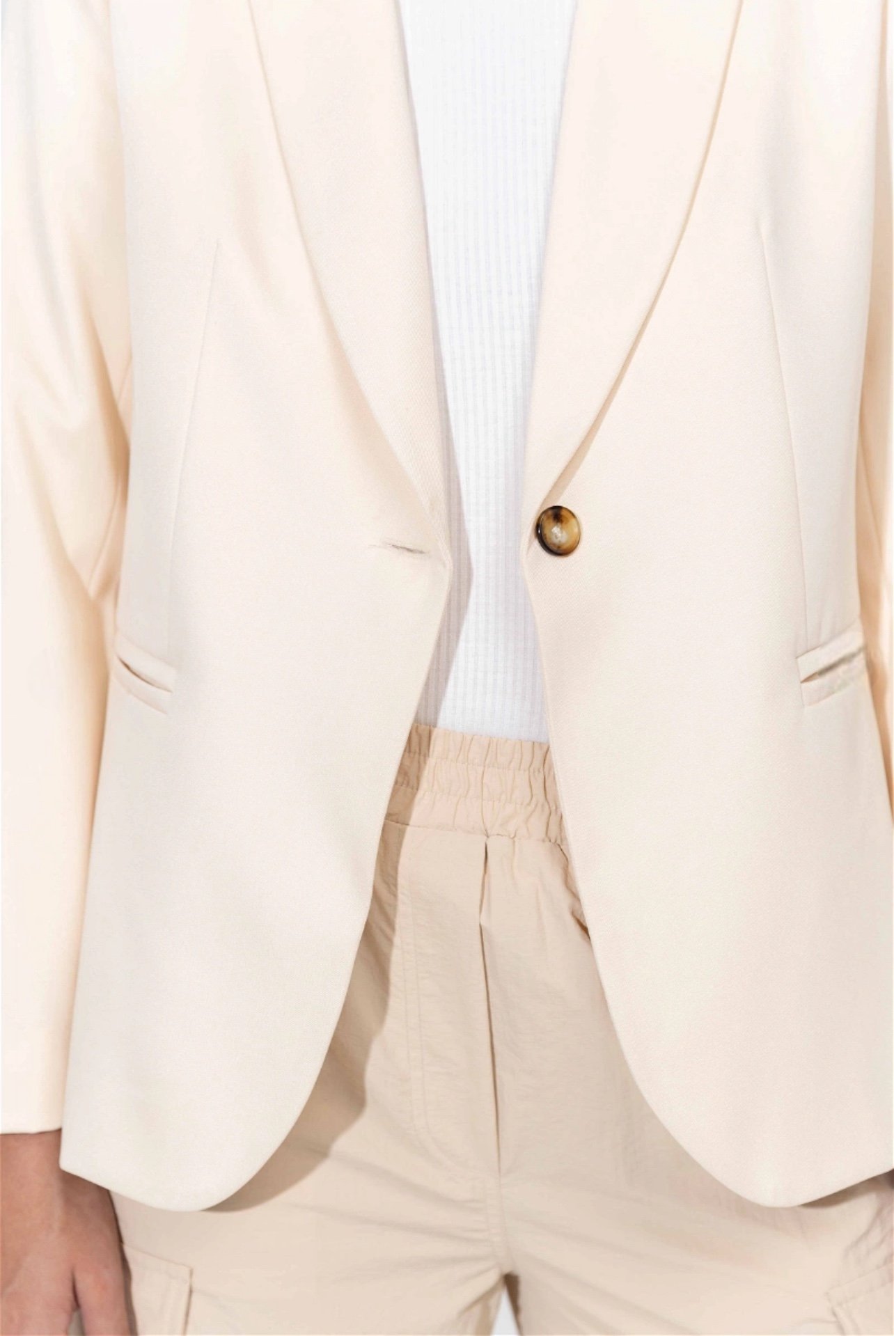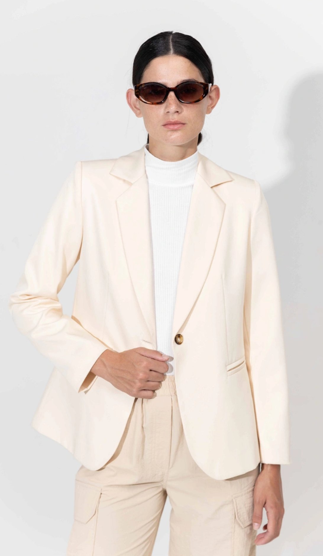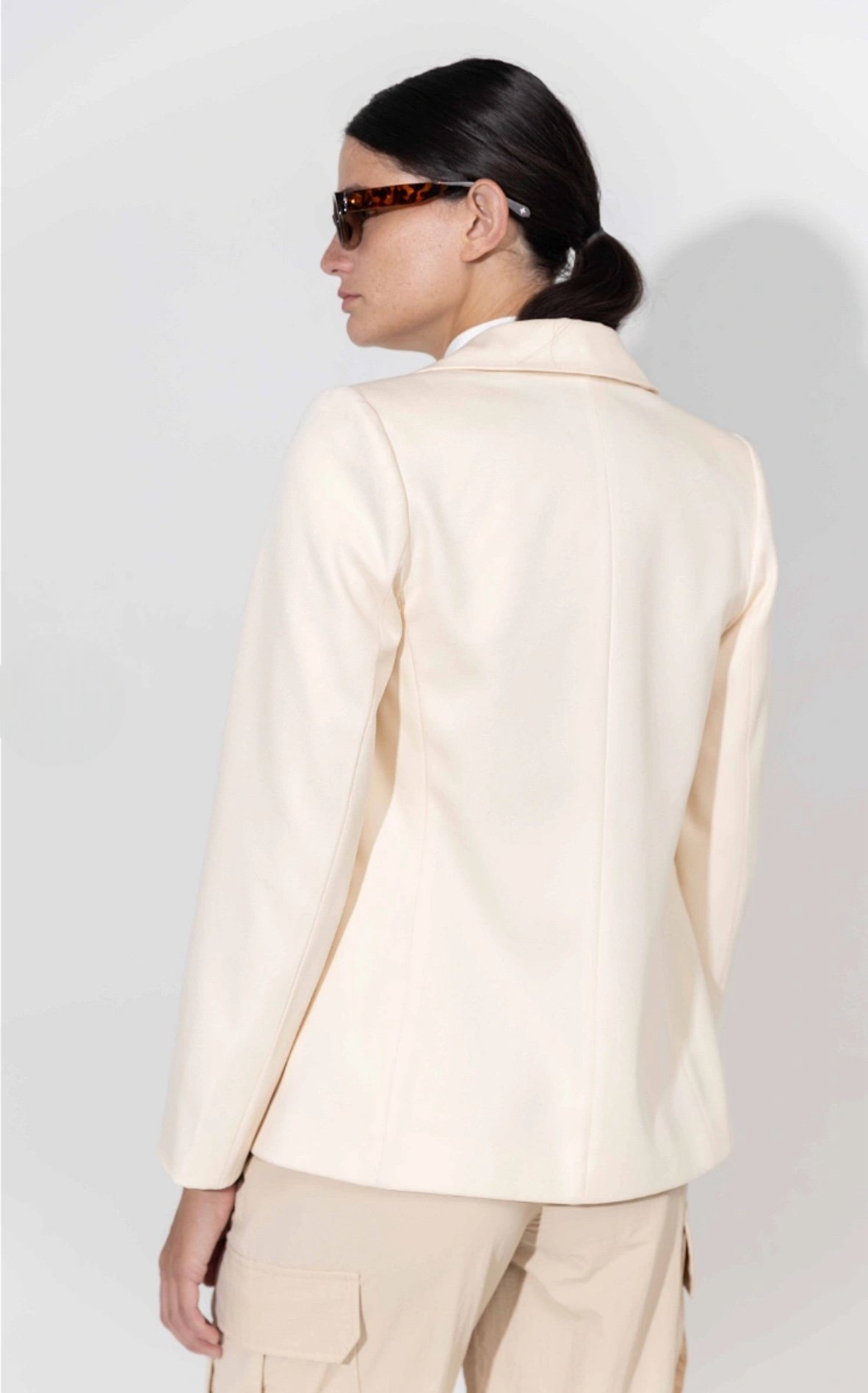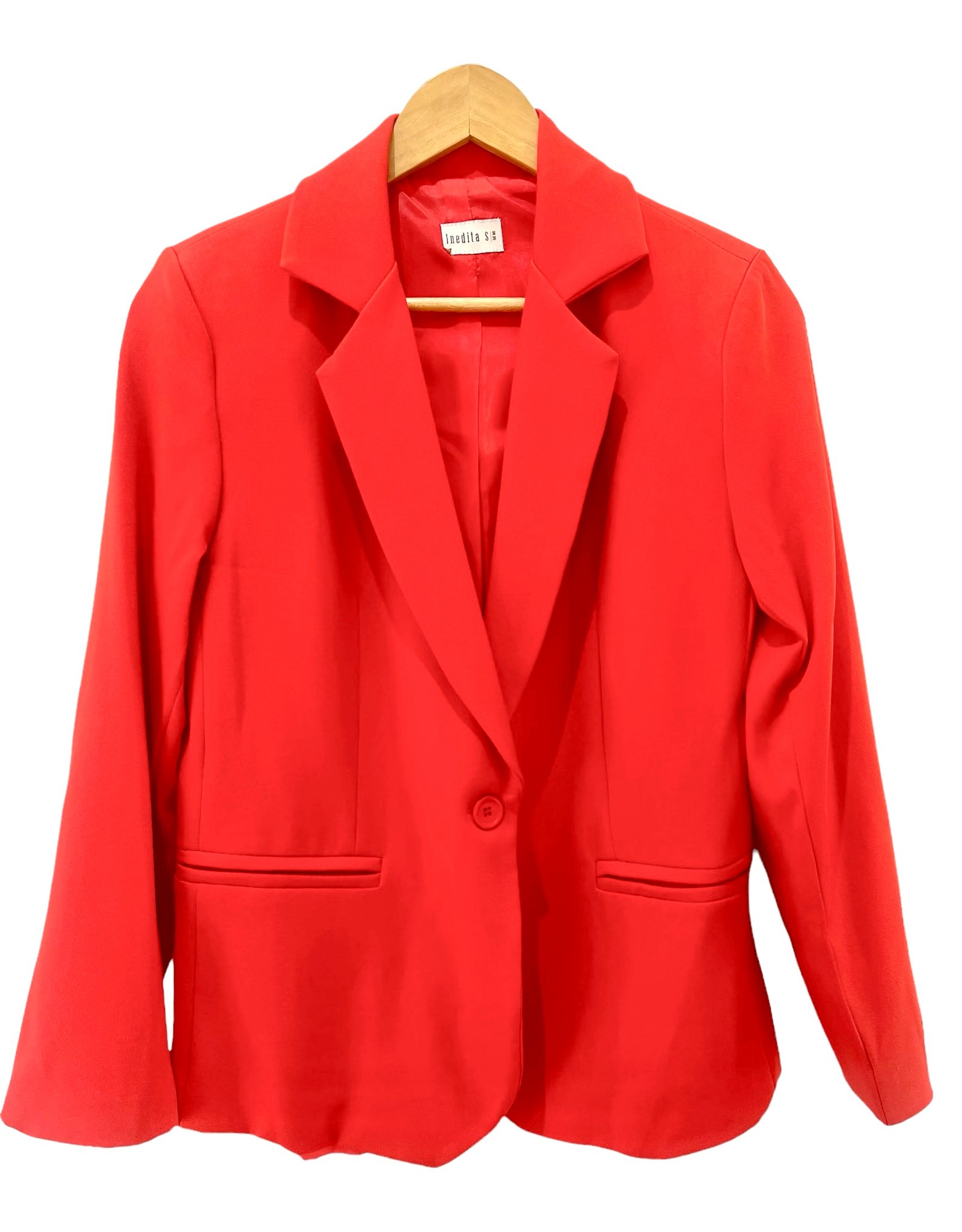 Blazer sastrero clásico de scuba glitter forrado con bolsillos ojal en delantero. Marca: INÉDITA