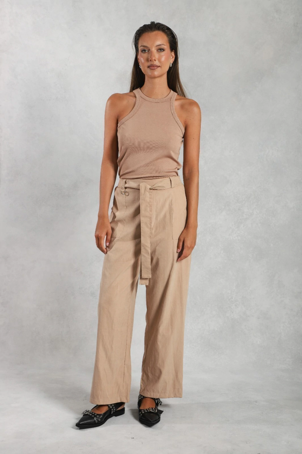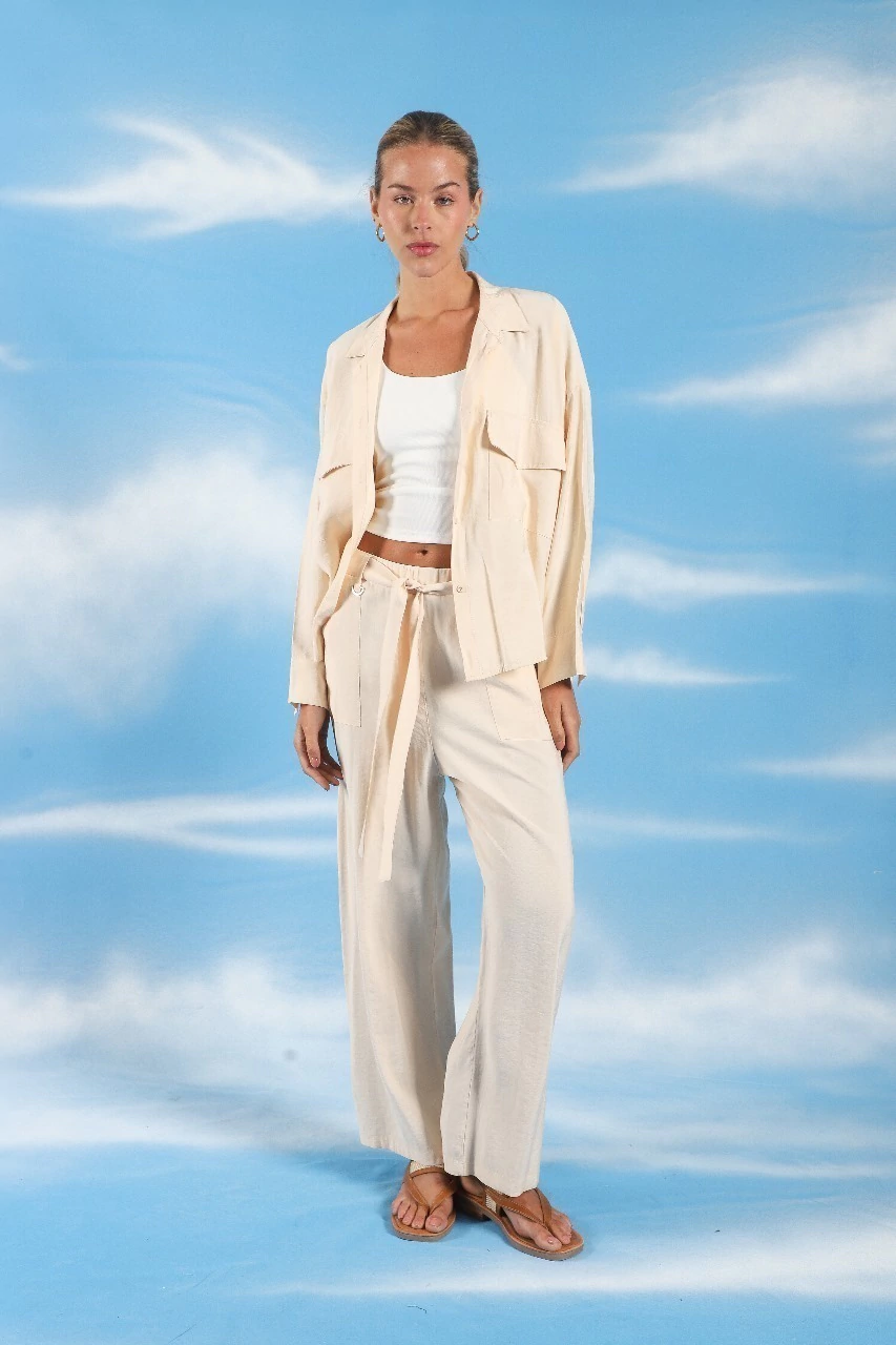 Pantalón MOON con bolsillos aplicados, pasacintos, lazo y elástico en cintura