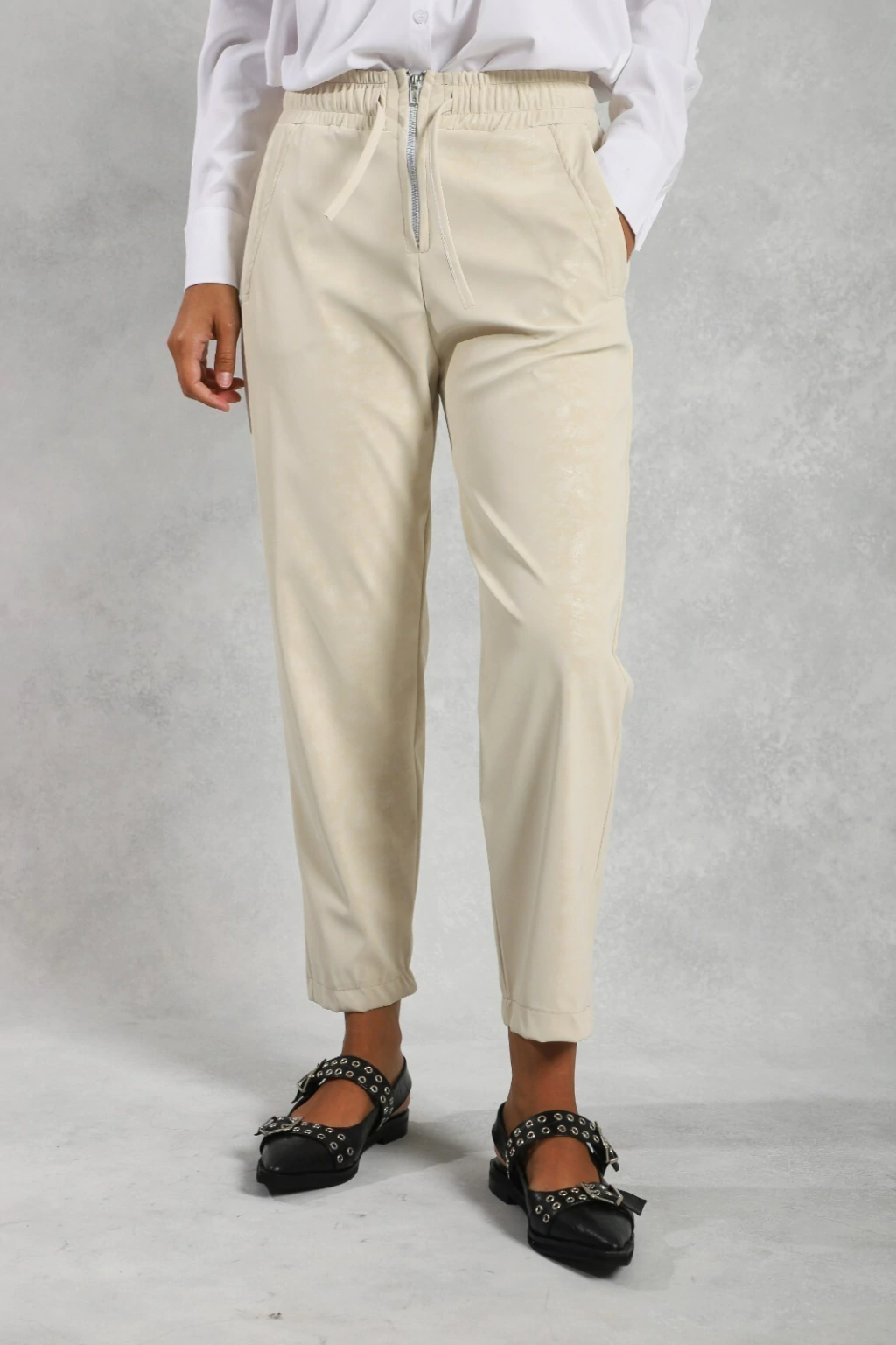 Pantalón cuero pu gamuzado con cierre delantero y elástico en cintura