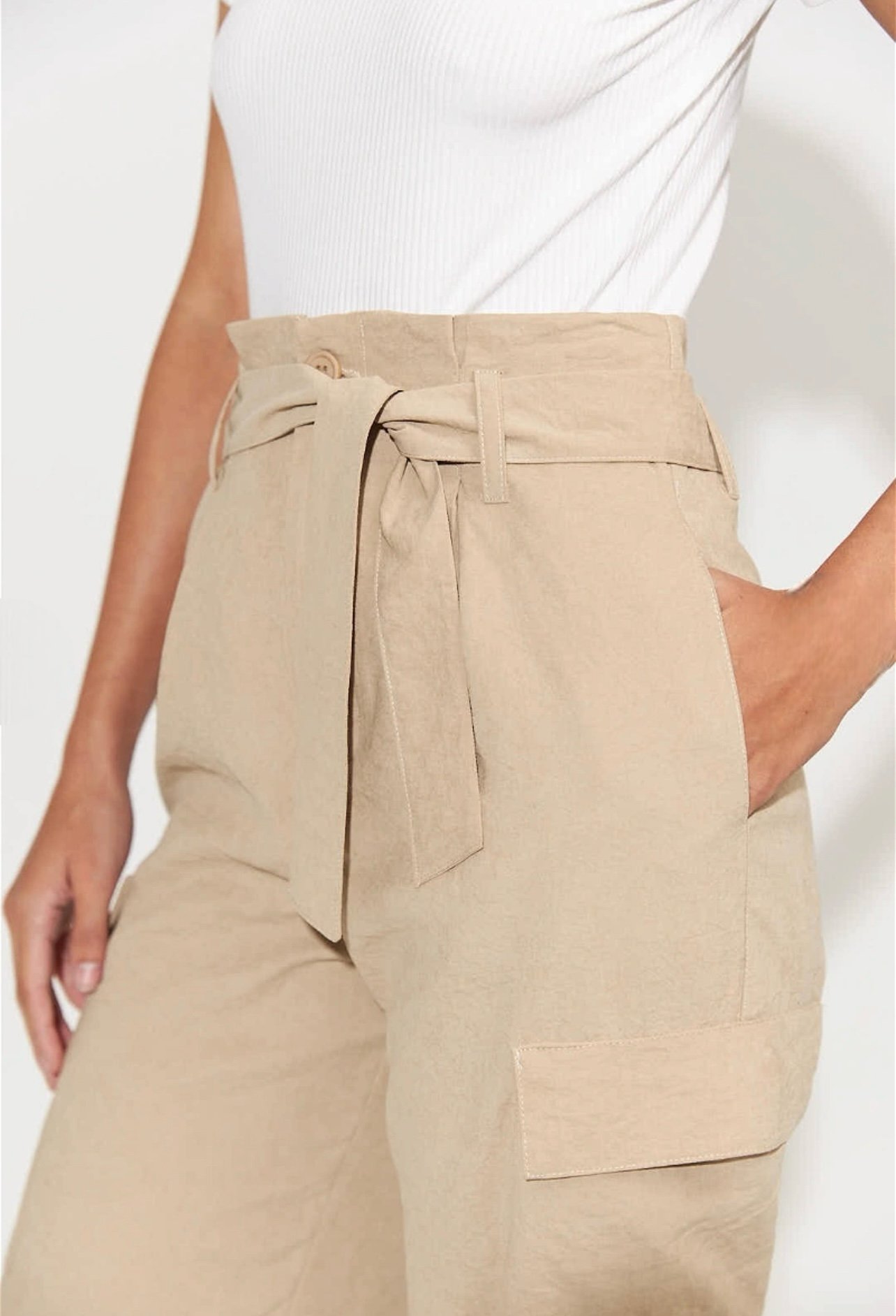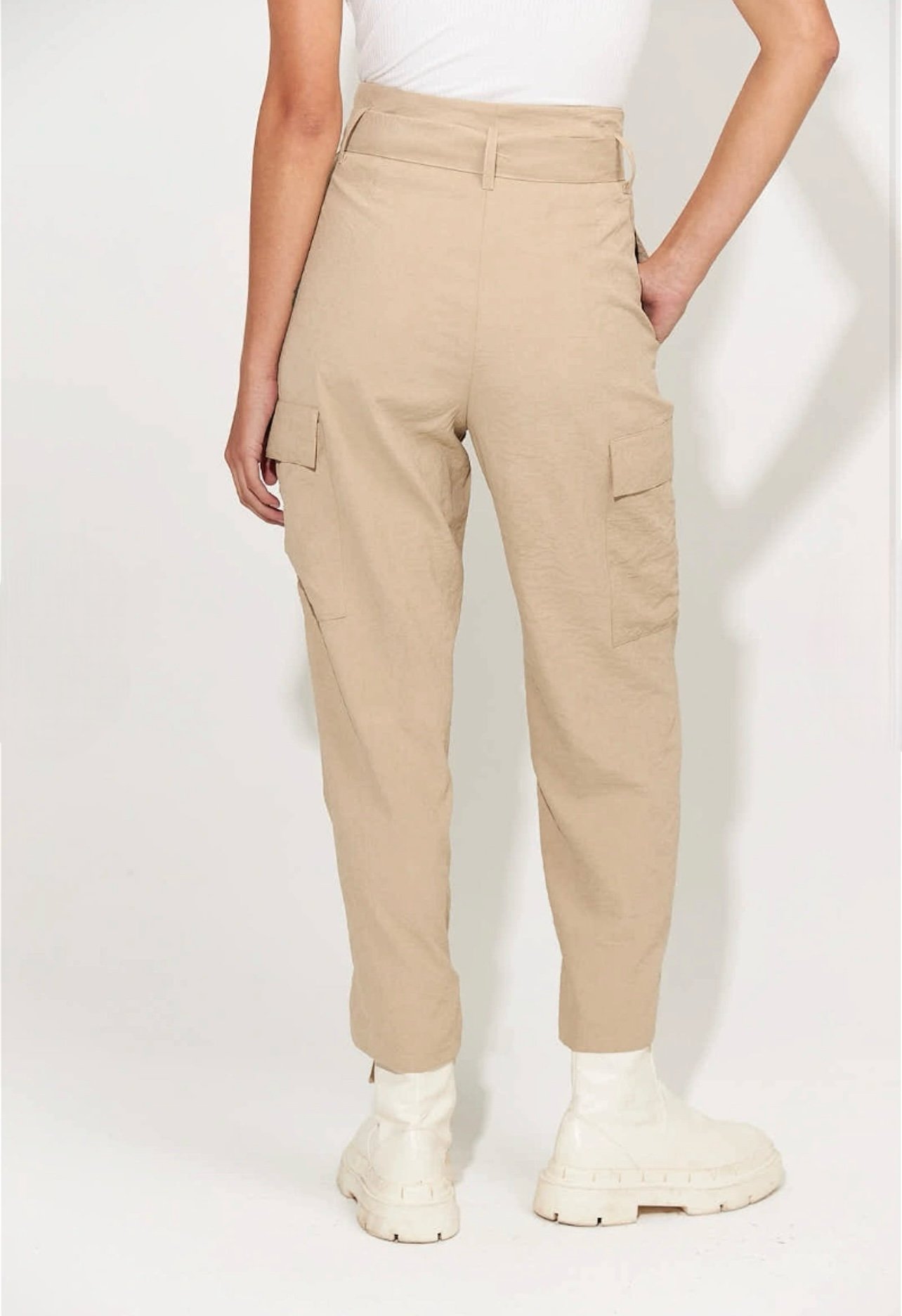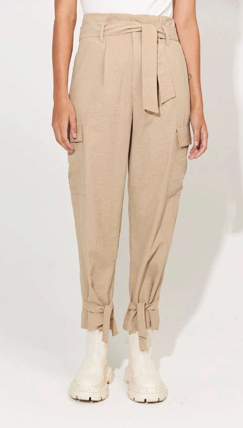 Pantalón cargo con bolsillos plaque en laterales y lazo en la cintura y tobillos. Marca: INÉDITA