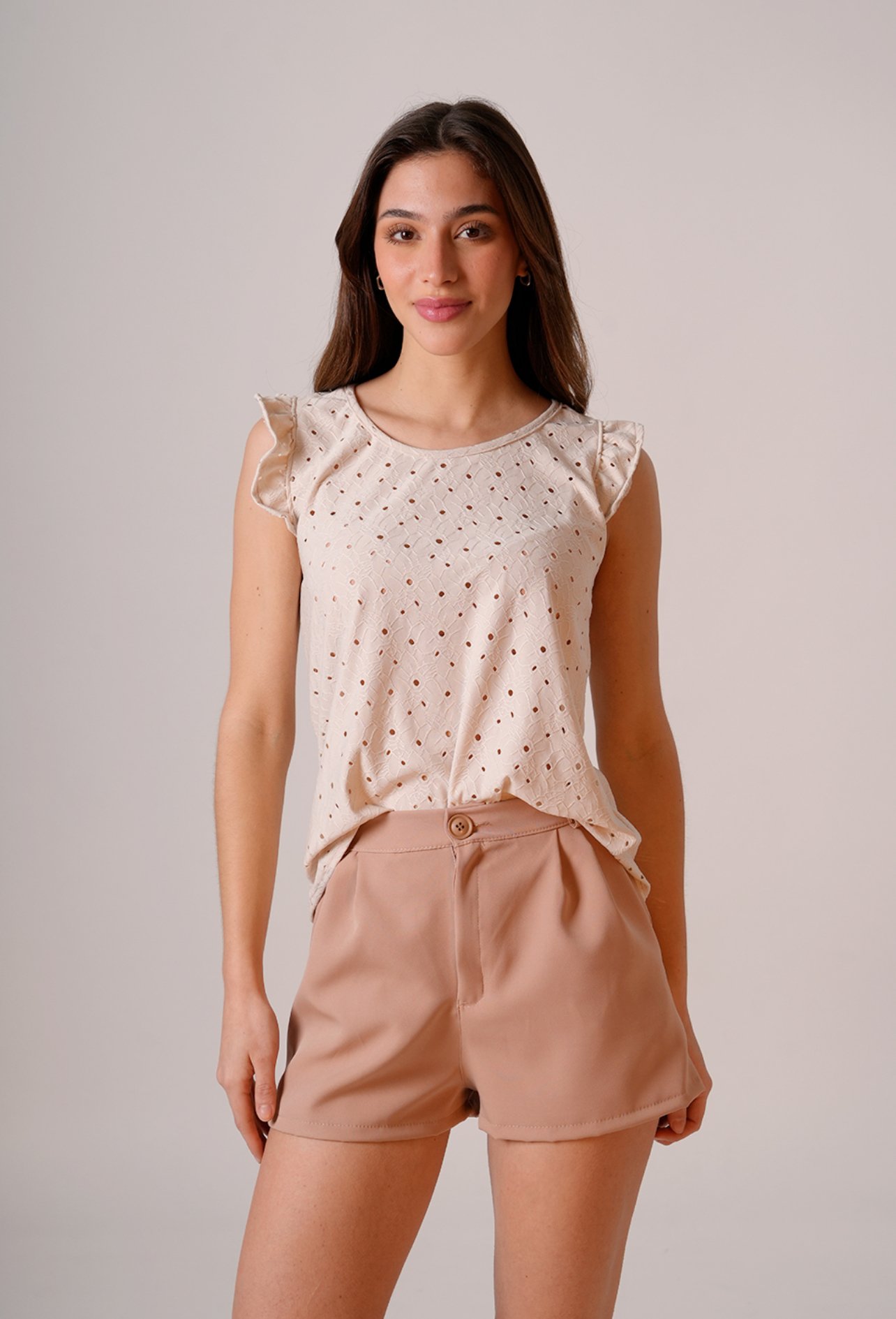 Musculosa con gota broderie punto tela flor grande