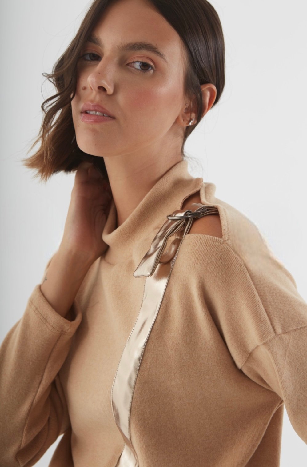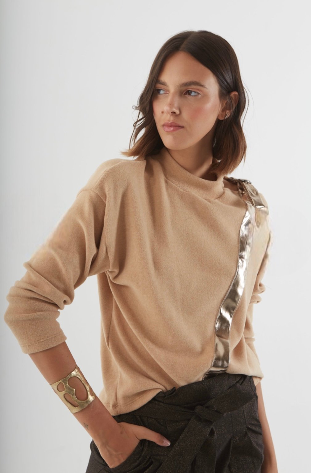 Sweater con detalle para atar en el hombro. Marca: Dalida